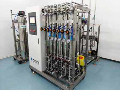 該系統(tǒng)配備500L大型儲水罐,采用衛(wèi)生級管路設(shè)計,每小時產(chǎn)水量達(dá)500升,可滿足規(guī)模化生產(chǎn)需求。智能控制系統(tǒng)實時監(jiān)測電阻率、電導(dǎo)率等關(guān)鍵指標(biāo),具備自動消毒和報警功能。滲源工程師團(tuán)隊還根據(jù)生物制品生產(chǎn)規(guī)范,對系統(tǒng)進(jìn)行了GMP合規(guī)性優(yōu)化。