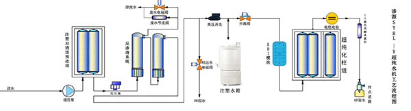 3. 具有超純水系統(tǒng)回收再利用裝置,二級反滲透濃水回收至預(yù)處理系統(tǒng)循環(huán)利用,可降低用戶使用成本,有效節(jié)約用水