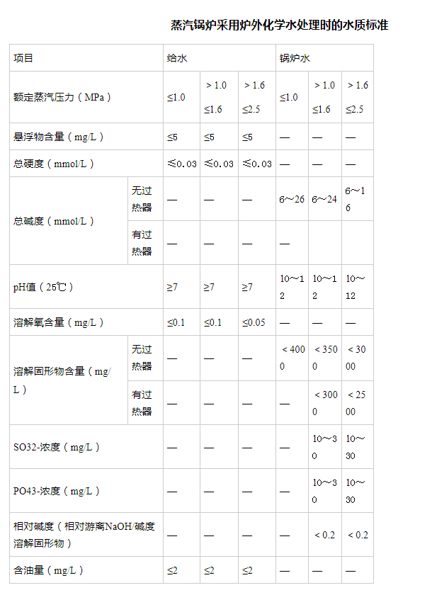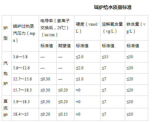 我國(guó)現(xiàn)行低壓鍋爐水質(zhì)標(biāo)準(zhǔn)為GB1576—1996,以水為介質(zhì)的固定式蒸汽鍋爐和汽水兩用鍋爐,也適用于以水為介質(zhì)的固定式承壓熱水鍋爐和常壓熱水鍋爐。