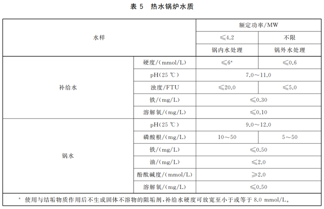 6.1 熱水鍋爐補(bǔ)給水和鍋水水質(zhì)應(yīng)符合表5的規(guī)定。